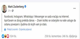 Normaliziran rad društvenih mreža, Mark Zuckerberg poslao poruku korisnicima