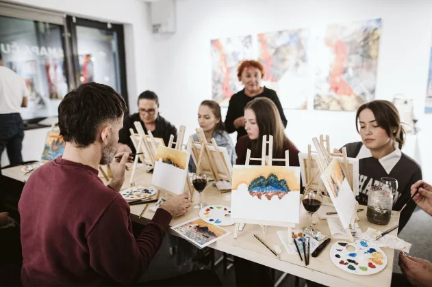 Radionica ”Wine and Paint”, organizirana u u okviru projekta “RomansWineDanube”, održana je u opuštenoj i inspirativnoj atmosferi, a već sljedećeg dana, u istom prostoru i terminu od 17 do 19 sati, bit će održana i radionica za djecu.