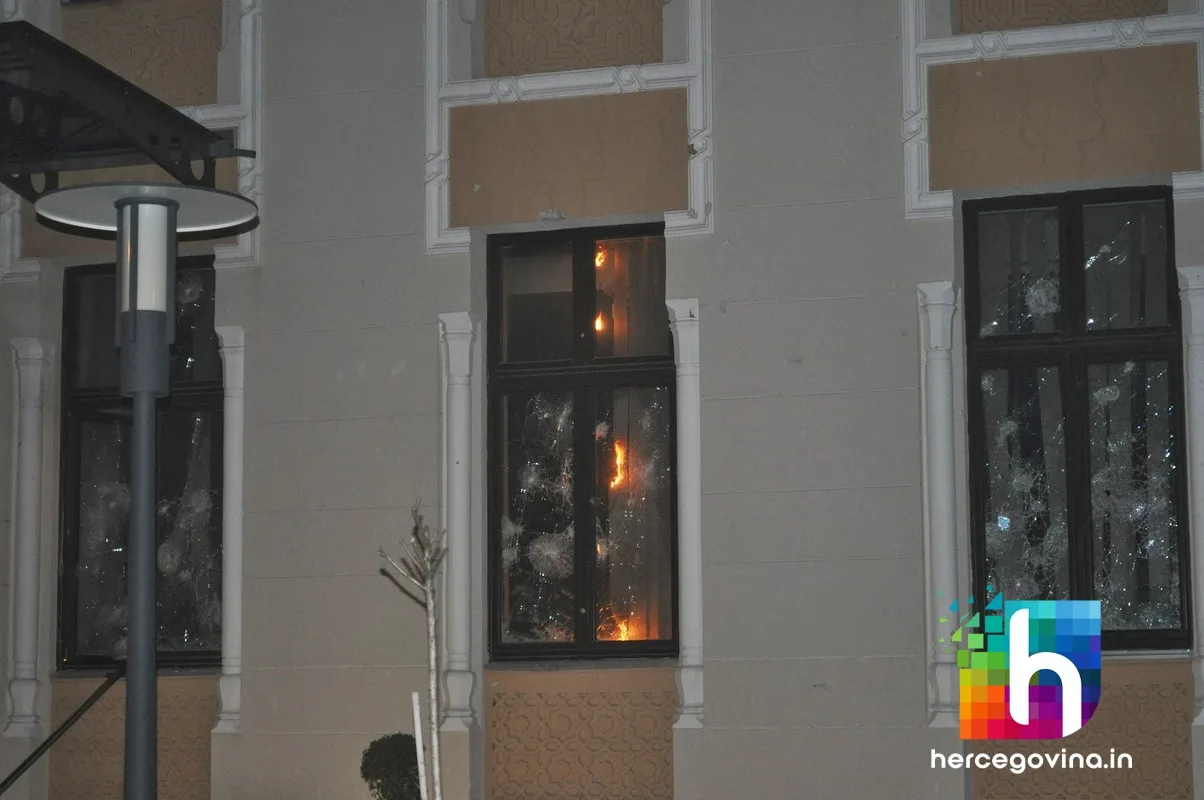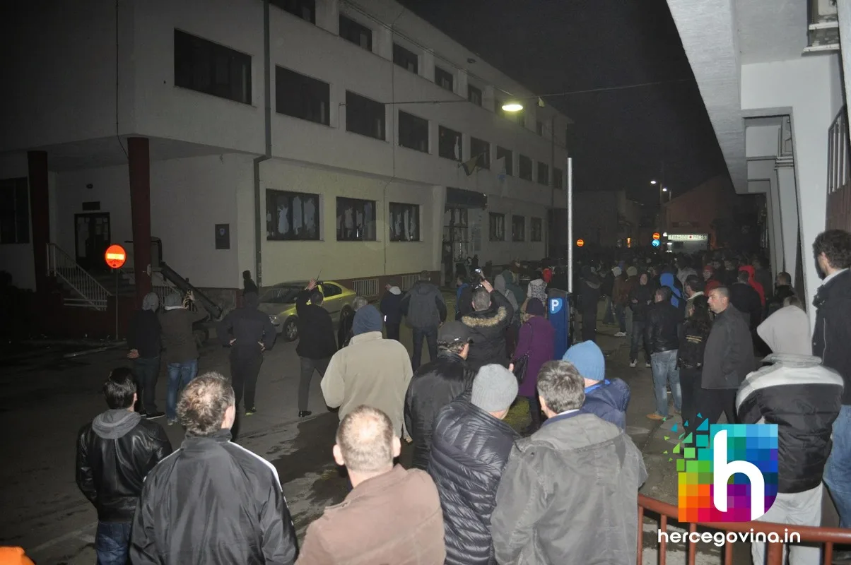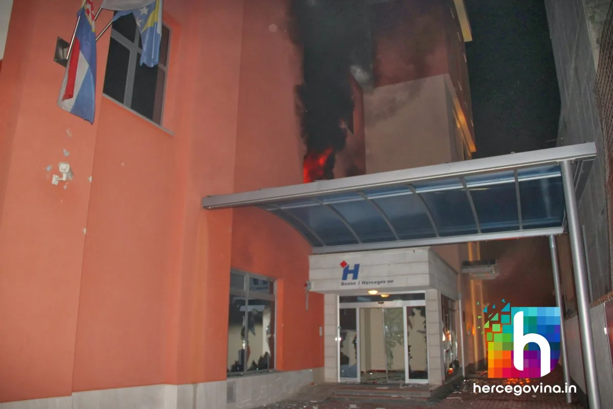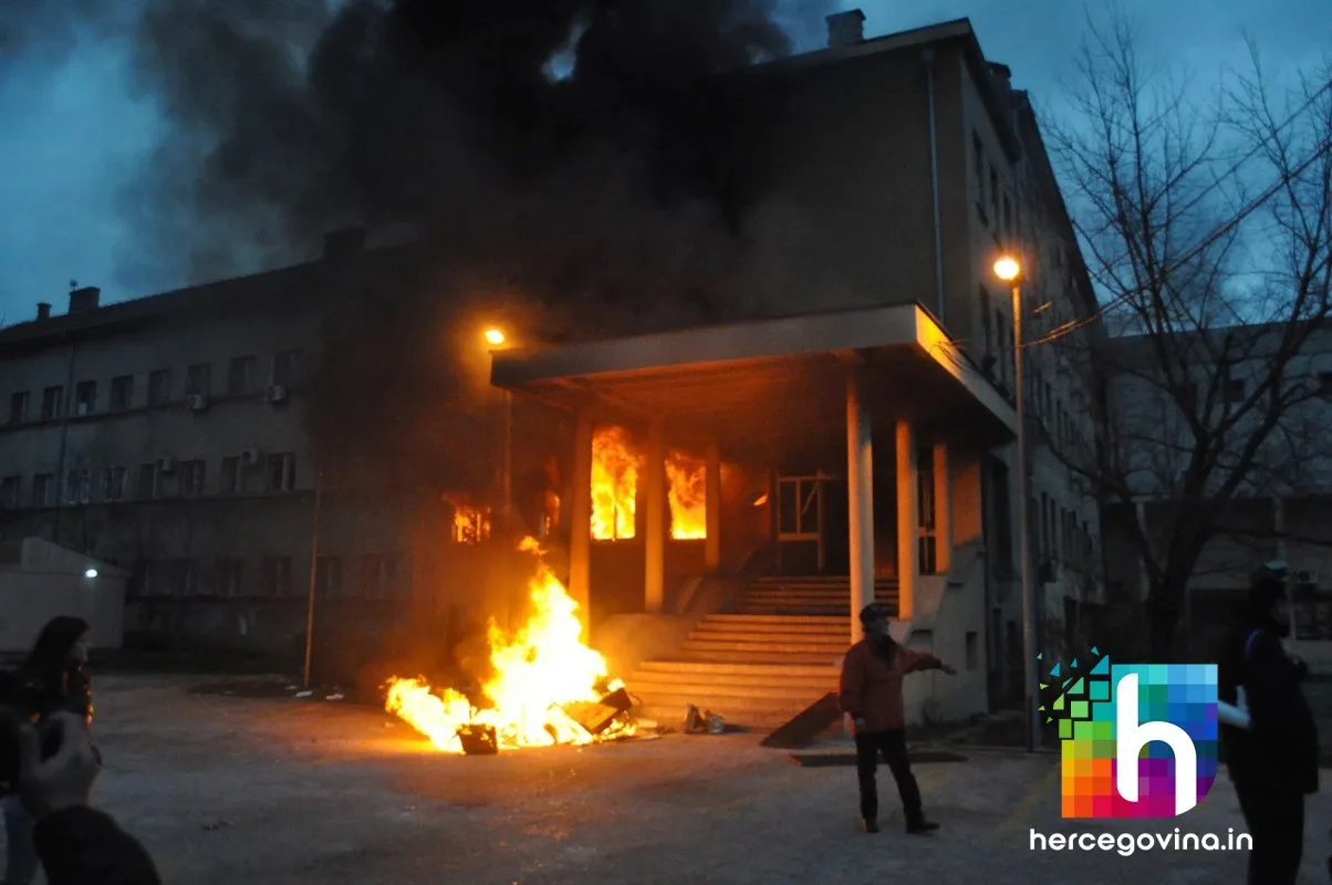 Prosvjednici su zapalili zgradu županijske Hercegovačko-neretvanske vlade, upali u gradsku vijećnicu te su i nju zapalili. Zapaljene su i zgrade HDZ-a BiH i SDA BiH.