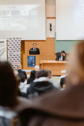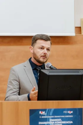 Prof. dr. sc. Nikša Alfirević sa Sveučilišta u Splitu u svom je izlaganju „Znanstvena komunikacija u društvenim znanostima“ analizirao specifičnosti prijenosa znanstvenih spoznaja unutar društvenih disciplina, s posebnim naglaskom na izazove interpretacije, vidljivosti istraživanja i društvenog utjecaja znanstvenog rada. Istaknuo je važnost prilagodbe komunikacijskih modela različitim ciljanim skupinama te veću otvorenost i dostupnost znanstvenih rezultata.