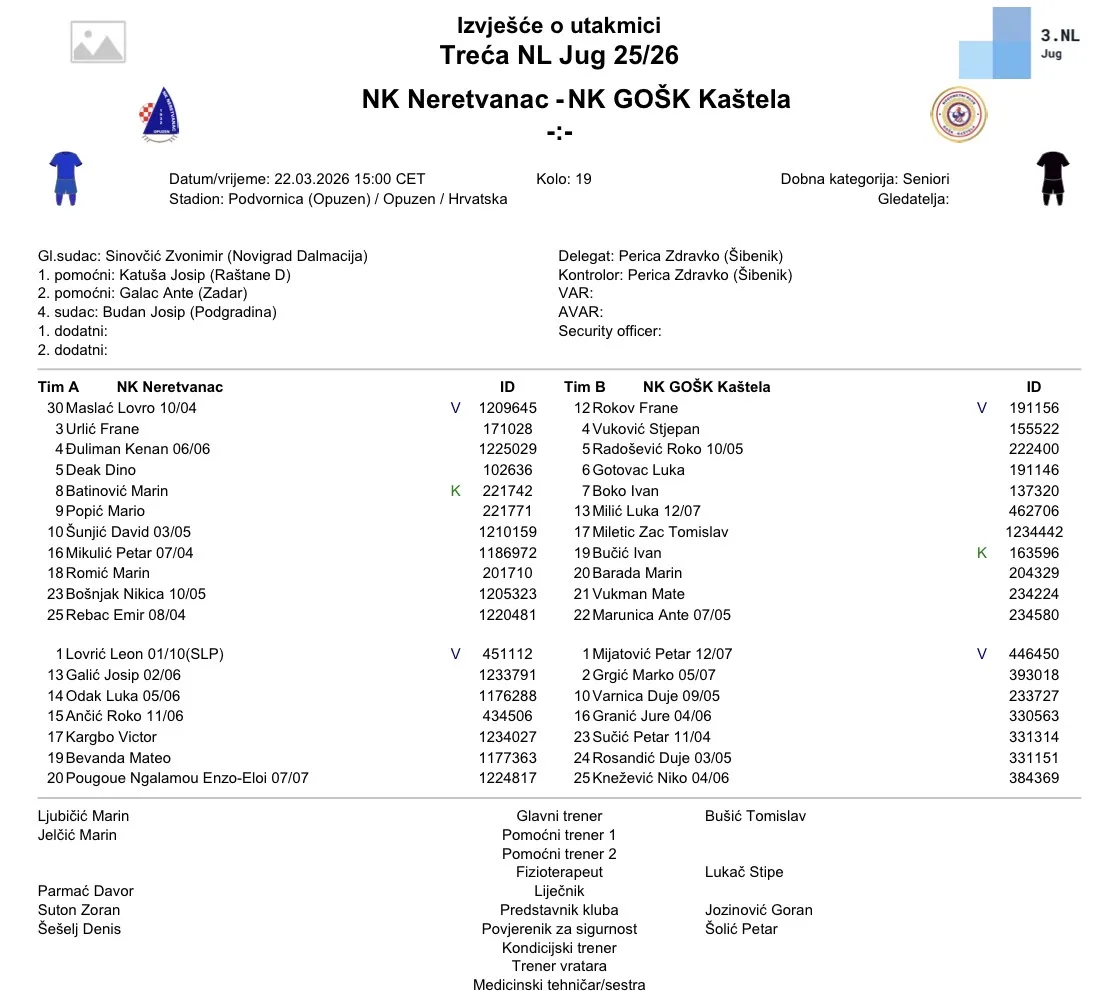 Završnica 19. kola 3. NL jug seli se u dolinu Neretve, gdje će na Podvornici snage odmjeriti Neretvanac i GOŠK Kaštela. Nakon što je veći dio kola već donio pregršt uzbuđenja, golova i promjena na ljestvici, ovaj susret stavlja “točku na i” jedne vrlo zanimljivog nogometnog vikenda.