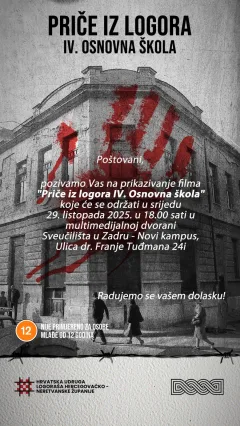 U srijedu, 29. listopada 2025. godine, s početkom u 18 sati, u multimedijalnoj dvorani Sveučilišta u Zadru – Novi kampus (Ulica dr. Franje Tuđmana 24i), bit će prikazan dokumentarni film „Priče iz logora IV. Osnovna škola“.