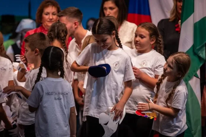 Na ovom Festivalu posvećenom djeci, lijepo je bilo vidjeti predstavljanje dječice iz Bosne i Hercegovine s tradicijskom folklornom baštinom Hrvata Mostara i okolice te zapadne Hercegovine. U nešto više od četiri minute programa imali su sedam različitih izvedbi, dječjih igara i pjesama koje su se međusobno izmjenjivale. Među djevojčicama nastupila su i dva dječaka uz košulje i tkane pojaseve, zanimljivim plavim hlačama – gaćama orijentalnog stila i utjecaja, a djevojčice u rubinama sa ili bez pregača i tkanicama, svi su bili bosonogi, kako je to kod djece u prošlosti bilo i najčešće. Djevojčice su uredno bile počešljane prema svome uzrastu. Možda je jedino malo izostala međusobna koncentriranost jednih na druge i sam nastup na pozornici.